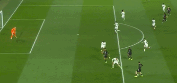 第74分钟,约根森后场出球失误,克瓦拉茨赫利亚无私横传,维蒂尼亚轻松吊射得手,大巴黎第3次领先,3-2!